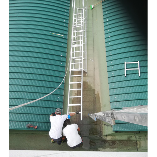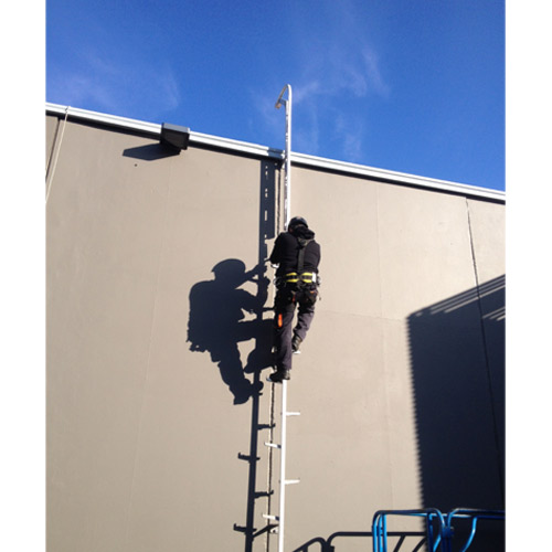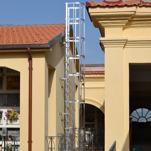 è un sistema di protezione anticaduta verticale permanente installabile su edifici, torri, tralicci, ecc. Le scale con protezione caduta sono equipaggiate con una guida centrale per il dispositivo anticaduta di tipo guidato già integrato. Sono disponibili con pioli fissi o richiudibili a scomparsa. (UNI-EN-353-1)